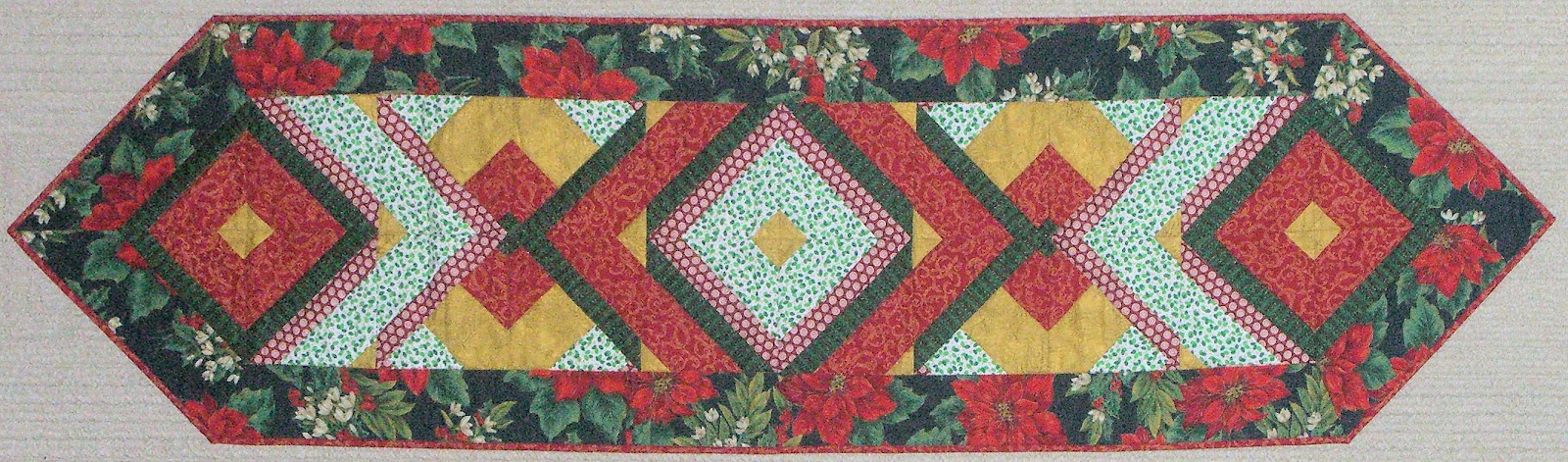 These leaded window quilts are made by by tracing the pattern onto paper-backed fusible web on the back of black fabric, carefully cutting out all the piece,s and attaching them to a large background piece of fabric. Next comes tedious stitching around the edge of black piece which permanently attaches the leading and quilts at the same time.